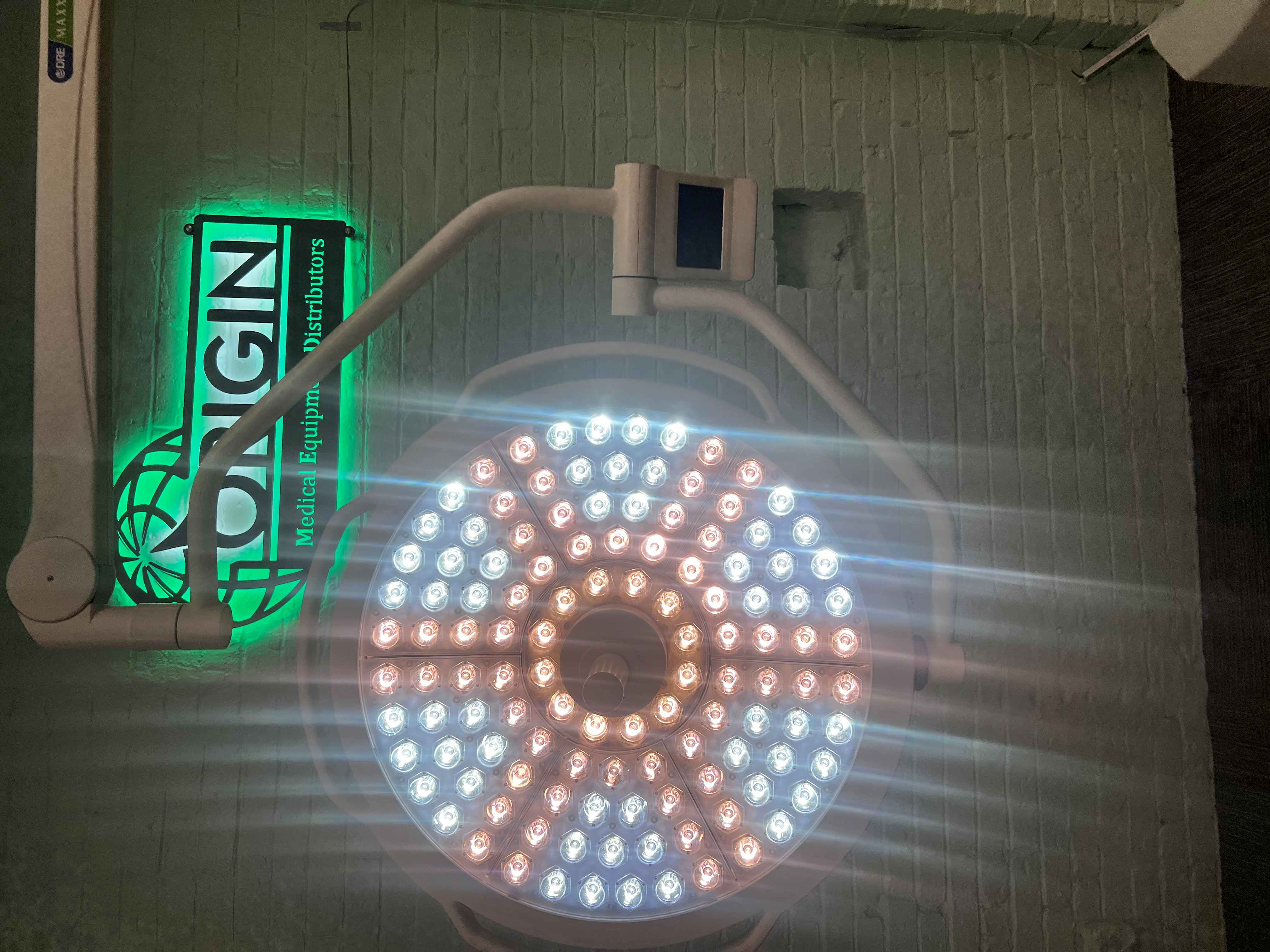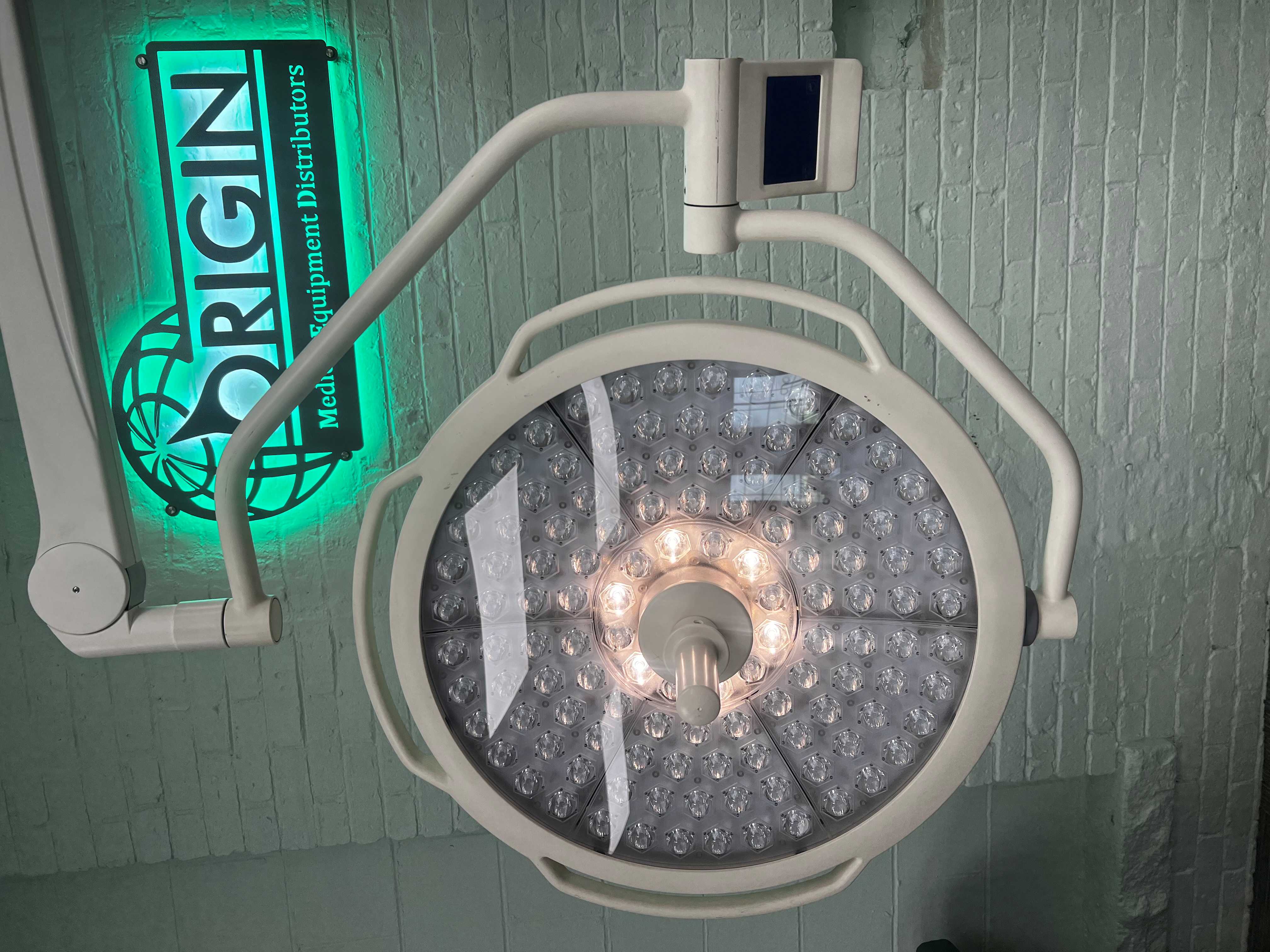 The surgical light is in good functional condition. The light is selling as-is. Please see photos for more details!
