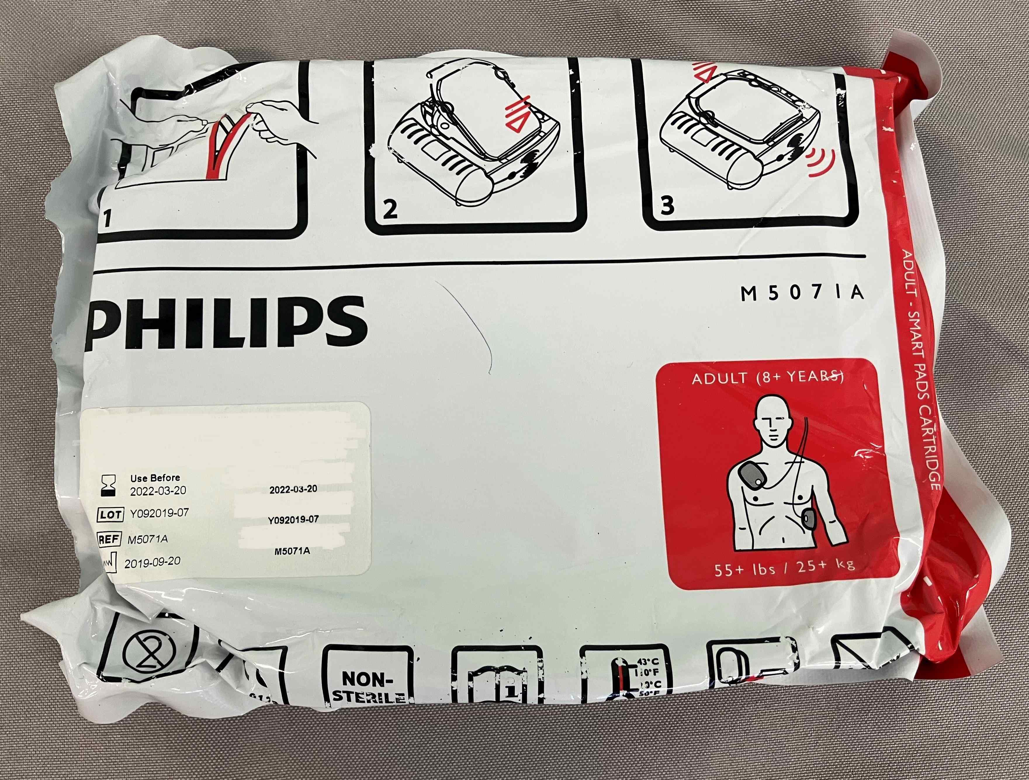 Adult (8 + Years, 55 + lbs / 25 + kg) Pads - Lot Y092019-07, REF: M5071A, DOM: 2019