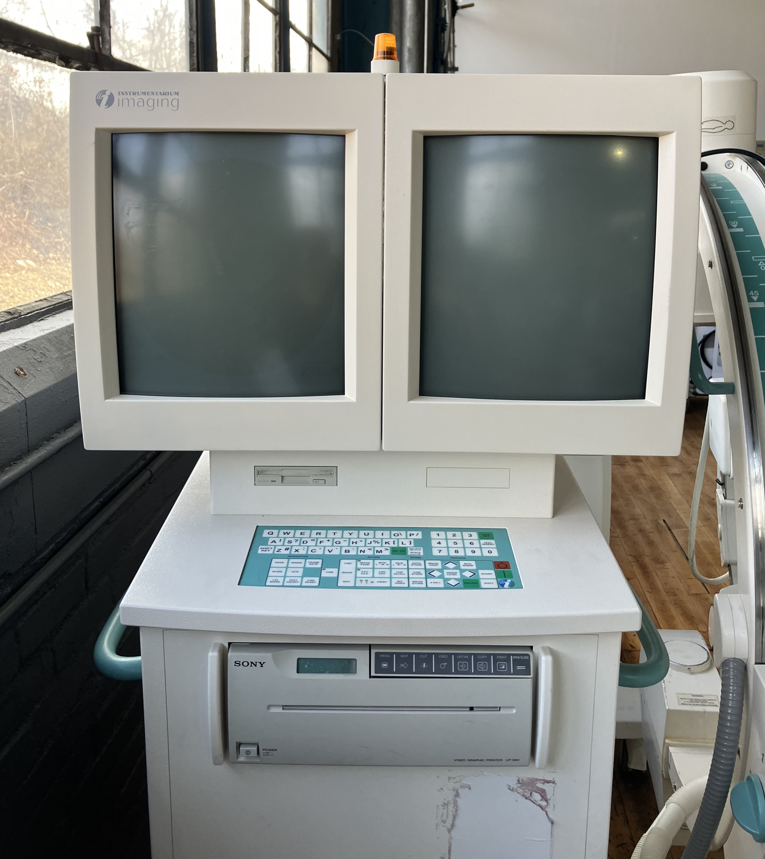 This c-arm is in good overall used cosmetic condition with minor scuffs and wear.